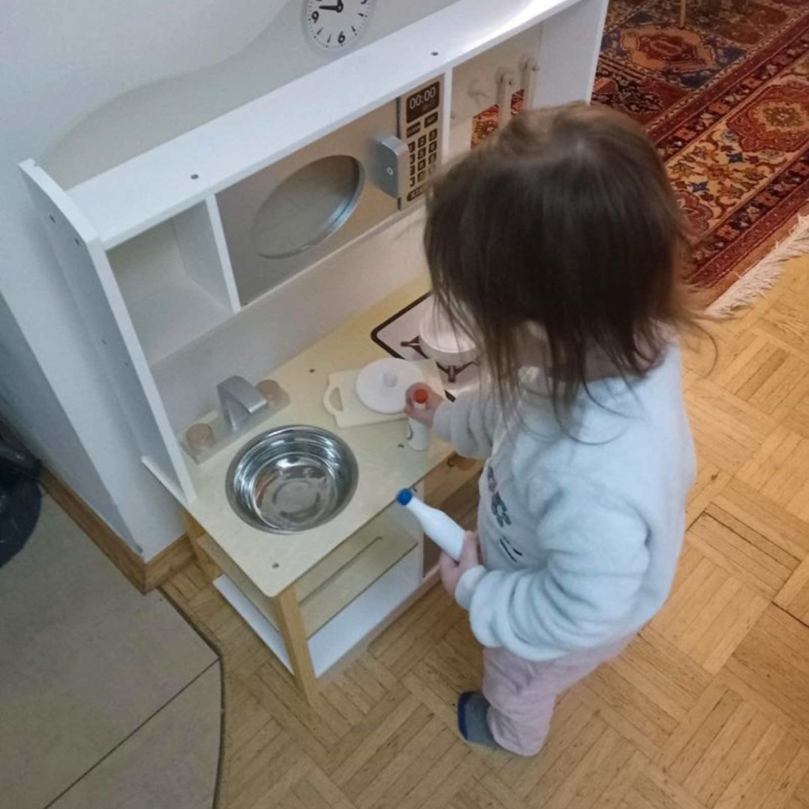 Kinder haben besondere Bedürfnisse, die ich ernst nehme,: einen Wickeltisch, niedrige Waschbecken und eine separate Toilette. Für den Mittagsschlaf oder um sich auszuruhen gibt es den Schlafbereich mit einer eigenen Betten für jedes Kind. Die Küche ist besonders wichtig: hier bereiten wir – auch oft gemeinsam mit den Kindern – die Mahlzeiten zu und lassen es uns zusammen am Tisch schmecken. In den Räumen gibt es Bereiche zum Basteln oder Spielen – manche Bereiche werden auch für verschiedene Anlässe umgeräumt. In den Räumen wird natürlich nicht geraucht, da wir kein Raucher sind und wir besetzen keine Haustiere.